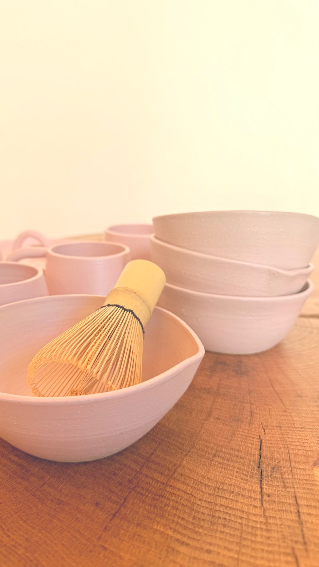 Deze matcha bowls in keramiek passen perfect binnen een tijdloos servies en zijn ook mooi te combineren met andere keramieken stukken uit onze collectie. Elk stuk is uniek en kan licht verschillen in kleur en afwerking — dat is net de charme van ambachtelijk werk.